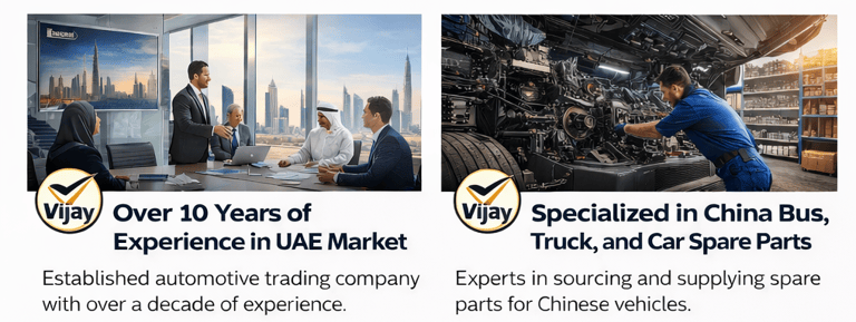 Vijay International Trading Co. LLC is a trusted supplier of high-quality spare parts for Chinese vehicles in the UAE, with over 10 years of industry experience. Based in the United Arab Emirates, we specialize in the trading and distribution of spare parts for China-manufactured buses, trucks, and passenger vehicles.